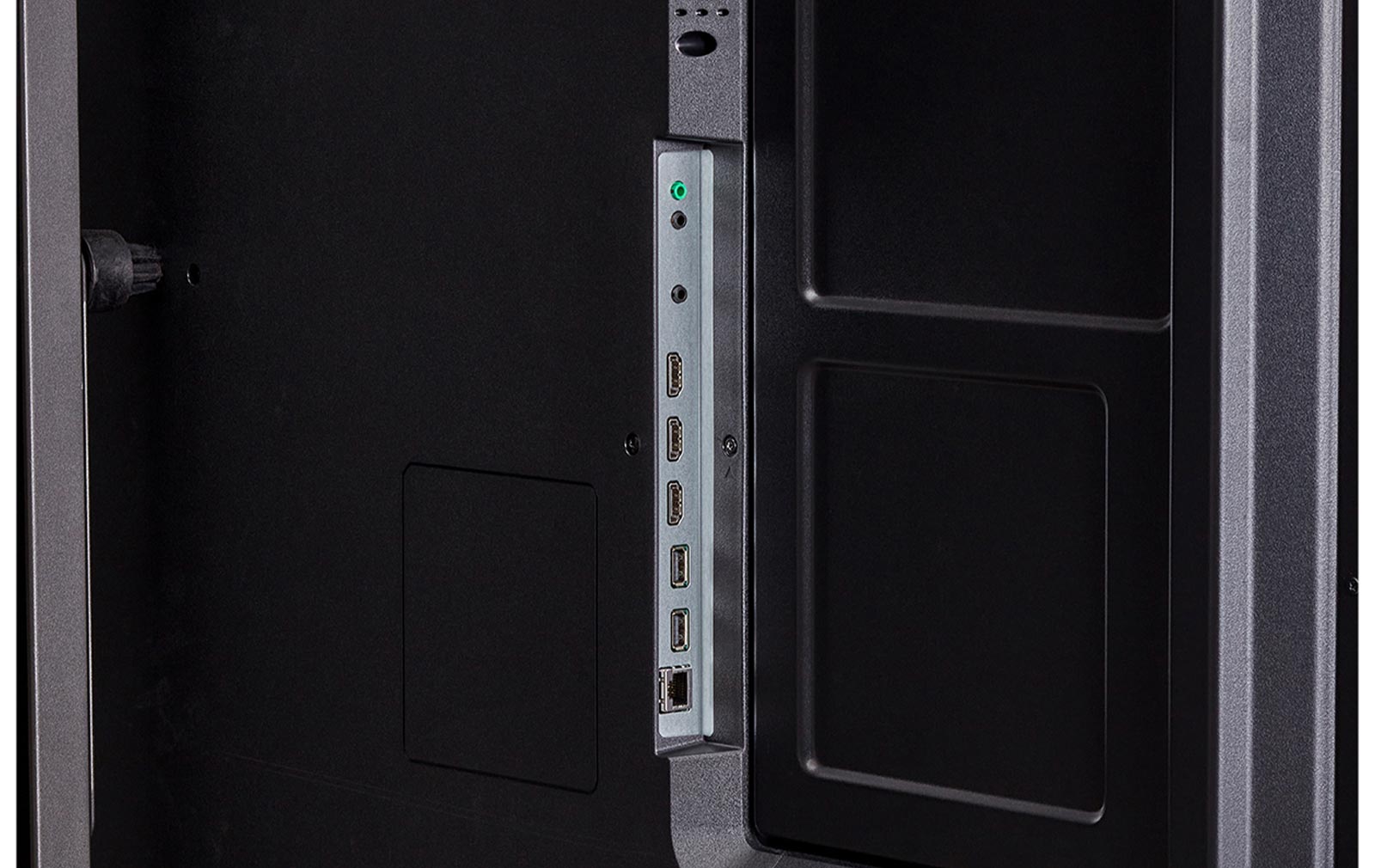 Das Gerät verfügt über mehrere HDMI-Eingänge (typisch 3x) und USB-Anschlüsse, die eine einfache Anbindung externer Quellen oder Inhalte-Updates ermöglichen. Zusätzlich sind Netzwerk- und Wartungsfunktionen (z. B. Remote-Management) verfügbar, wodurch sich der Display zentral überwachen oder aktualisieren lässt.