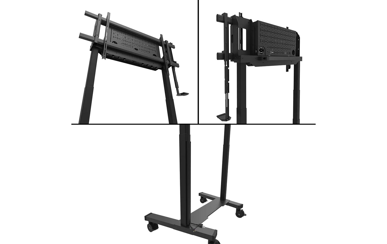 Für hohe Mobilität ist der MOVE Lift XL mit einem großen Handgriff sowie stabilen 100-mm-Doppellaufrollen mit Bremse ausgestattet, sodass ein problemloser Transport – auch über Schwellen oder Teppichflächen – möglich ist. Das offene Untergestell bietet einen komfortablen Zugang zum (Touch-)Display und erleichtert das Manövrieren um Hindernisse. Ein optional montierbarer Kabelkanal zur strukturierten Kabelführung ist im Lieferumfang enthalten. Der MOVE Lift XL wird teilweise vormontiert geliefert, um eine zügige und unkomplizierte Installation zu unterstützen.