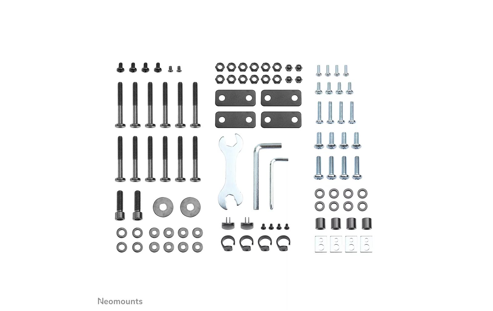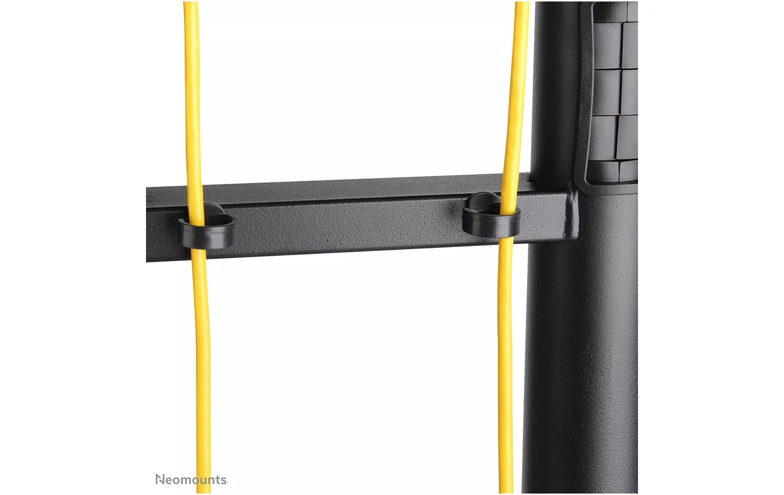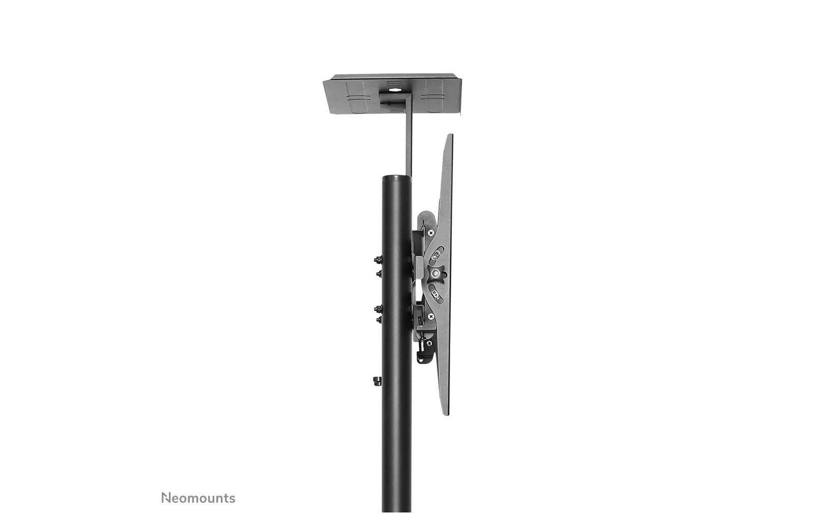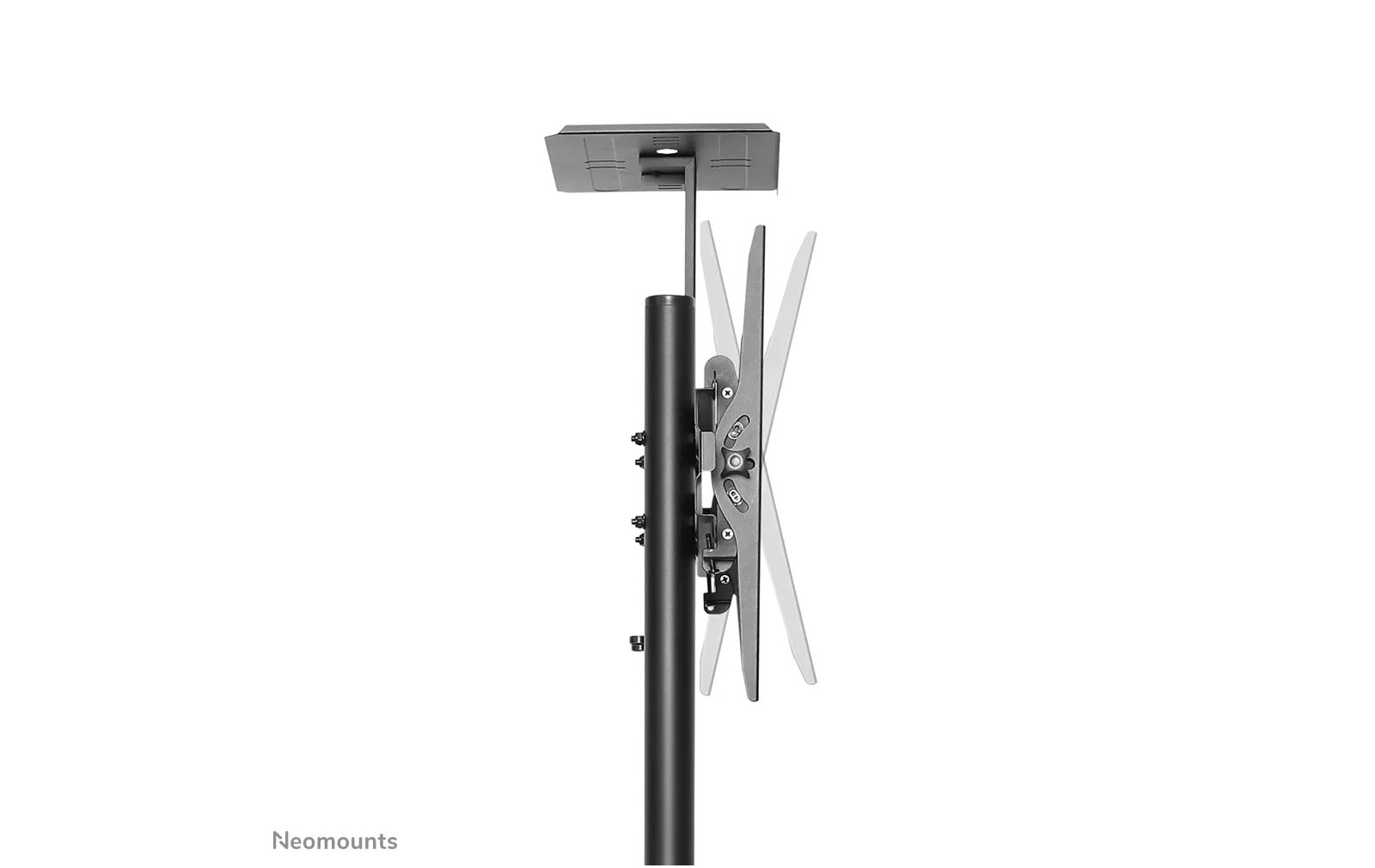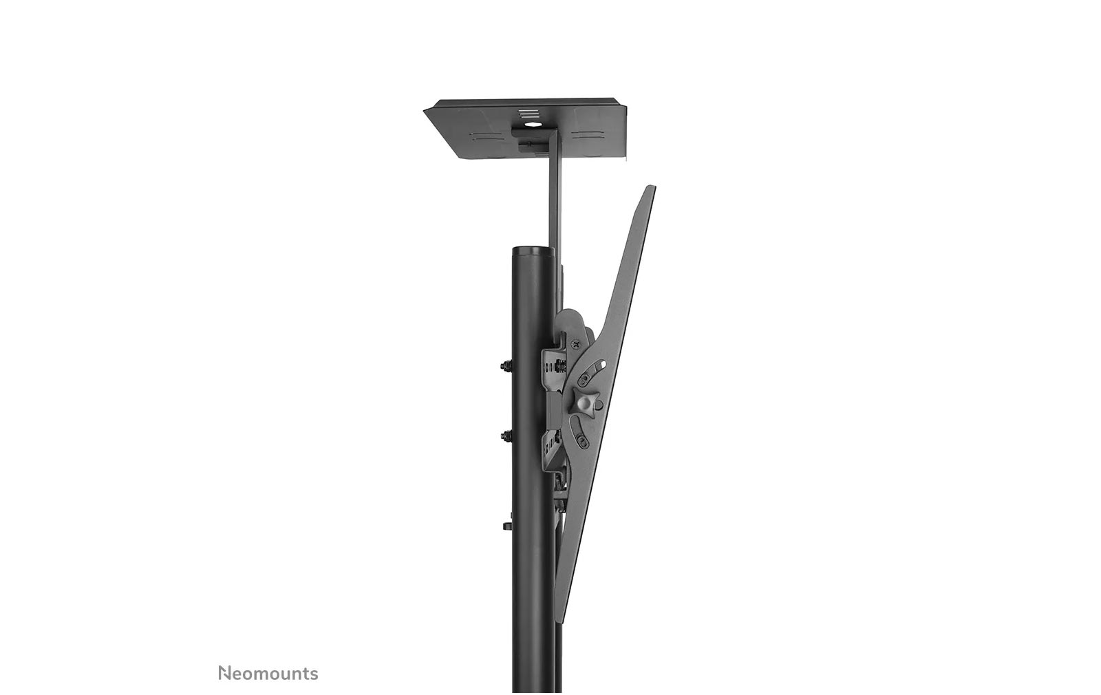 Dank der Neomounts-Neigungstechnologie (bis zu 20°) lässt sich der Bildschirmwinkel individuell anpassen, um den bestmöglichen Betrachtungskomfort zu gewährleisten. Die Halterung ist manuell höhenverstellbar von 154 bis 170 cm. Ein integriertes Kabelmanagementsystem sorgt für eine ordentliche und verdeckte Kabelführung vom Ständer zum Bildschirm.