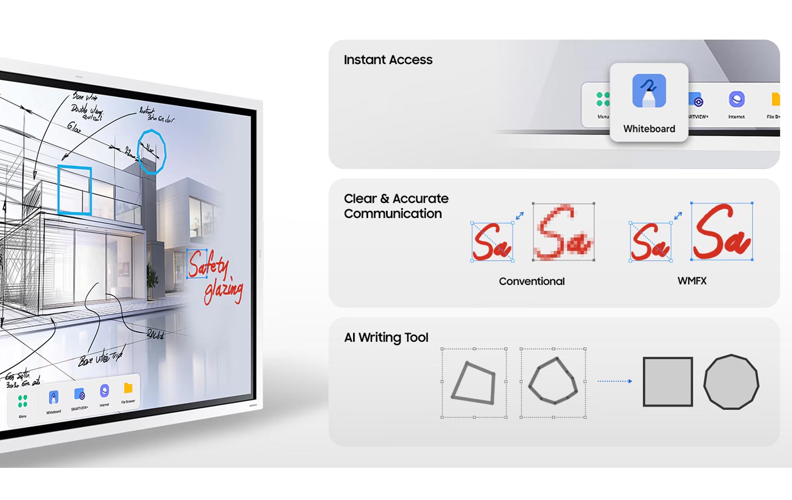 Die weiterentwickelte Whiteboard-App macht jede Notiz und Skizze vollständig bearbeitbar. Inhalte lassen sich flexibel verschieben, skalieren oder anpassen – bei stets erhaltener Klarheit und Detailgenauigkeit. Das KI-gestützte Schreibwerkzeug ermöglicht die direkte Eingabe handschriftlicher Texte in Suchfelder und wandelt diese in präzise digitale Schrift um. Zudem erkennt es grobe Skizzen und verfeinert sie automatisch zu sauberen, professionell wirkenden Grafiken.